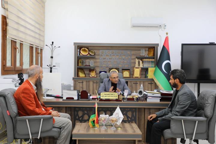 استقبل المدير العام للمركز العام للتدريب وتطوير التعليم الدكتور محمد إبراهيم غومة صباح اليوم، السيد مصطفى قدورة مدرّب اللغة الإنجليزية المعتمد من المركز بفرع زليتن وعضو لجنة متابعة البرنامج التدريبي، برفقة رئيس قسم الشؤون الإدارية بفرع زليتن.