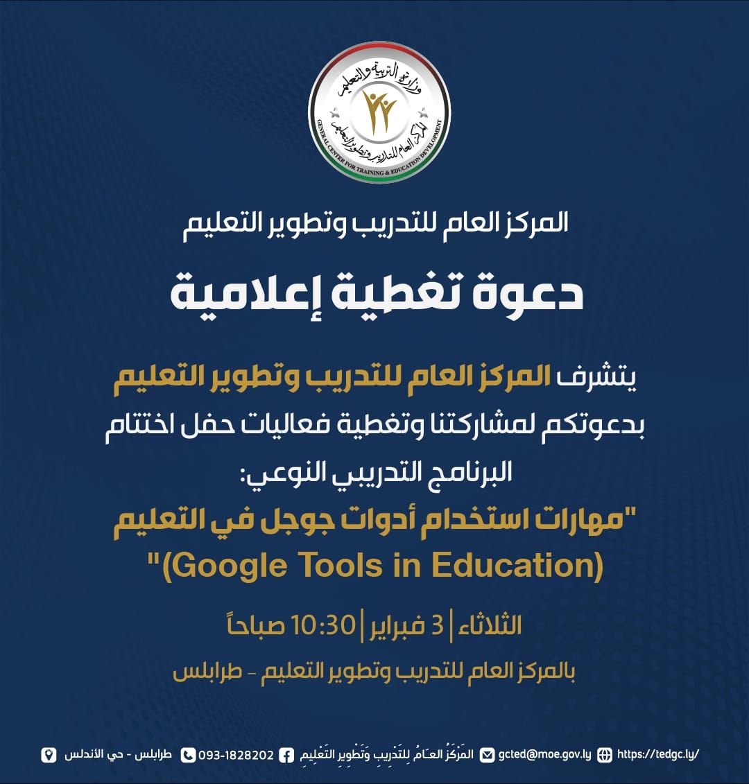 دعوة تغطية اعلامية فعاليات البرنامج التدريبي “مهارات استخدام جوجل في التعليم.