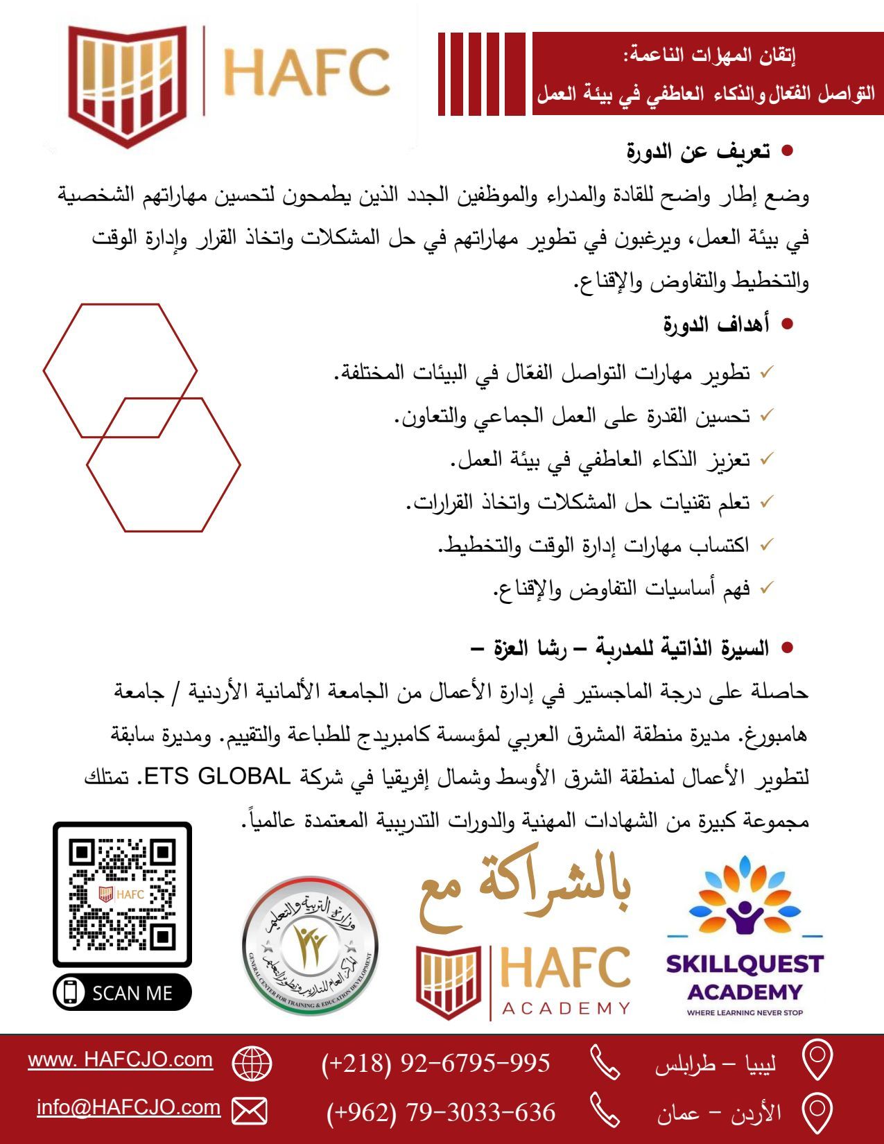 بهدف تطوير مهارات التواصل، وتعزيز الذكاء العاطفي والعمل الجماعي، إضافة إلى مهارات حل المشكلات، واتخاذ القرار، وإدارة الوقت، وفهم أساسيات التفاوض والإقناع.